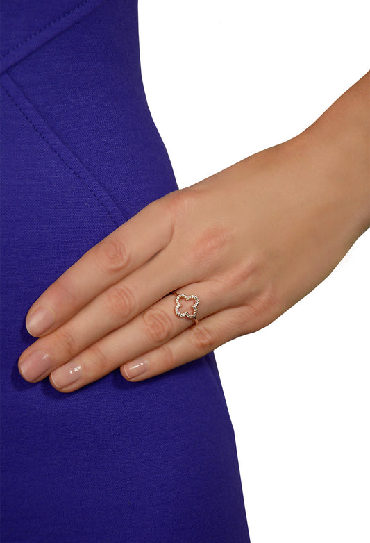 Leaf Ring 'Kleeblatt' Zirkonia rosé vergoldet