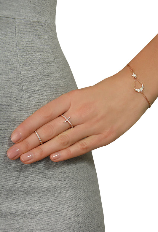 Leaf Ring 'Kreuz' Zirkonia rosé vergoldet
