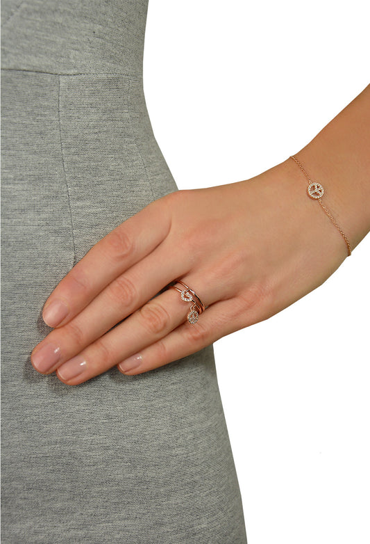 Leaf Ring mit Anhänger 'Peace' rosé vergoldet