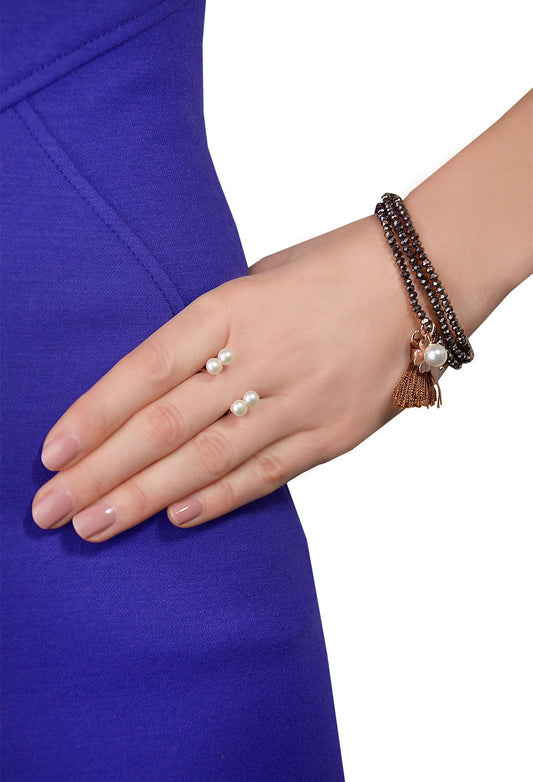 Leaf Ring mit Anhänger 'Peace' rosé vergoldet
