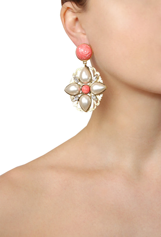 Ohrstecker 'Stars and Floral Laser Cut' koralle